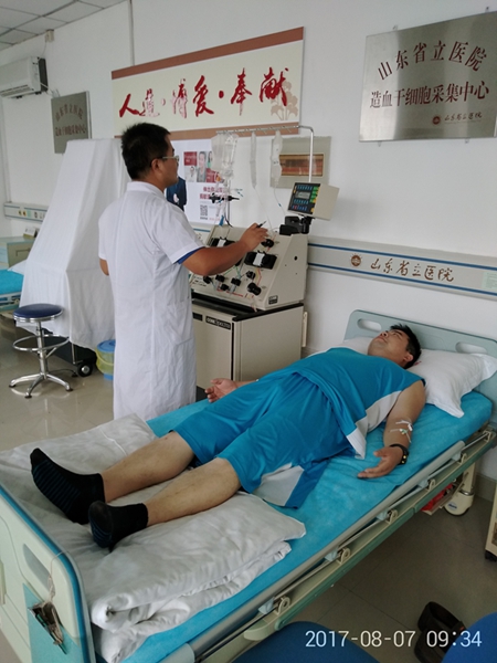 2012年,范棟又積極加入了中國造血干細胞捐獻者資料庫。2017年6月28日,范棟接到濟寧紅十字會的通知,他的造血干細胞和一位患者初步匹配成功。得知這個消息,范棟很興奮,迅速進行下一步的配型檢測,通過高分辨檢測與體檢,范棟完全符合捐獻條件。范棟感到非常高興――自己能延續他人的生命,這是自己生命價值的體現。2017年8月7日,范棟在濟南捐獻造血干細胞,挽救了他人生命,成為了全國第6661例、山東第568例、鄒城第4例成功捐獻者。