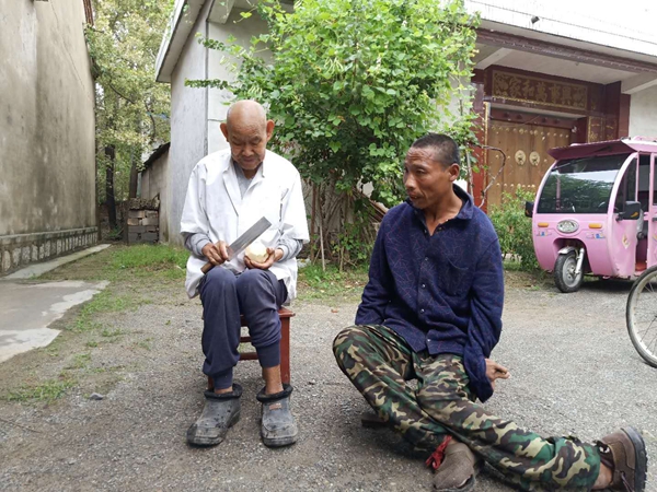 “憨南京”在1986年不到3歲的時就成了孤兒,起初,李西從每天都去給南京送吃的,幫他洗曬帶有屎尿的被子和衣服。慢慢地,小南京長大了,喜歡熱鬧的他經常去村里人多的大路上待著!澳暇┮怀鋈ゾ筒挥浀没丶,累了就在馬路邊過夜,那年冬天我在路邊找著他,都凍得哆嗦了!睘榱朔奖阏疹櫍钗鲝牧x無反顧地把南京接到家里。2010年,88歲的李西從被檢查出患有嚴重的膽結石疾病,完成手術被推進監護室時,老人眼睛還沒有睜開就問道:“南京今天是誰給送飯吃的?”如今李西從已經96歲了,也堅持照顧了南京32年。