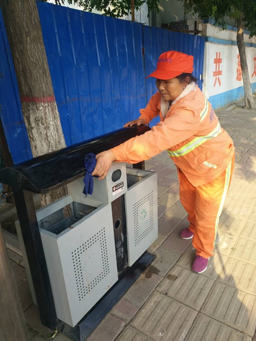 她在近幾年的創城與創城復審工作中身先士卒,埋頭苦干,處處嚴格要求自己,別人能做到做好的自己一定不甘落伍,而且用自己的實際行動做到了。為了保證所轄路段的清掃質量,她每天早晨4:00至晚上10:00全部在路上來回巡查,顧不上回家吃飯,休息。路邊的果皮箱臟了,她從家里帶來抹布、洗潔精,一個一個的擦洗,綠化帶內有垃圾雜物,她用手一個一個的撿,手伸不到的地方她用夾子伸進去一個一個挾,直到干凈為止。