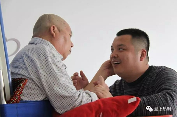 吳光輝認為三分治療,七分護理。于是他請來東營當地最專業的護工,決定跟護工系統學習后為父親進行專業的護理。通過學習,吳光輝逐漸上了手,每天捏腳按摩、兩個小時一翻身、四小時一扣背……在此期間,吳光輝還跑遍了濟南、上海、北京的各大專業康復醫院,得到的答復均是父親的病情沒希望了。后來,經朋友介紹,吳光輝帶父親來到了煙臺海港醫院做康復治療。在那段日子里,雖然父親依舊沒有任何知覺和反應,但樂觀的吳光輝還是依然堅持每天陪在父親身邊,為父親擦身喂飯、端屎倒尿。