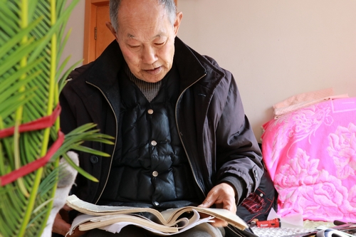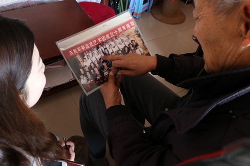 帶頭排練的就是李光平,他已經79歲高齡?梢惶岬絽蝿,仿佛整個人年輕了50歲。李光平自幼喜歡呂劇,12歲時隨村劇團演出拉琴伴奏,15歲開始創作。這兩樣愛好始終伴隨著李光平,并融入到社會活動中。