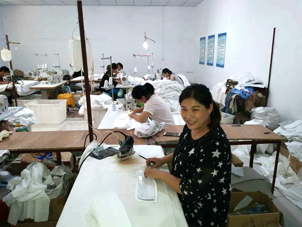“大愛服裝”加工廠在袁偉的帶動和管理下與博惠紡織有限公司一合作就是三年,正在企業發展走了良性正規的道路,定單充足。在自己得到豐厚回報的同時,現該廠共安置婦女勞動力50多人,平均月工資在1800-2600元,并且工資發放及時從不拖欠,解決農村剩余勞動力的同時,改善了她們的生活質量,引起當地黨委政府和婦聯的高度重視,多次帶領各村婦女群眾前來參觀指導,并給予了袁偉很大的支持和幫助。大愛服裝加工廠在2014年和2015年度兩次代表雙泉鎮迎接了市婦聯領導的檢查,在2017年初脫貧攻堅決戰決勝的重要階段,“大愛服裝”廠主動請纓,以每戶每月150元幫扶了兩個貧困戶脫貧。