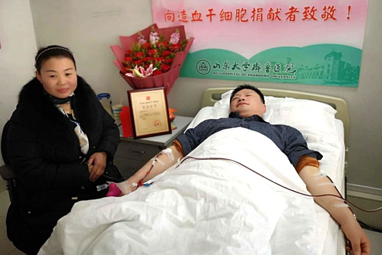1月5日,劉祥彥在相關人員陪護下,赴山東大學齊魯醫院采集造血干細胞,陪護人員里有一個關鍵人物,就是劉祥彥的愛人。