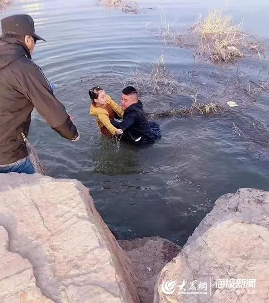 下水救人的宋曉波衣服都已濕透了,跳水救人的時候根本沒來的及脫衣服,想都沒想就跳進水里,手機也被水浸泡了。上岸后他擠了擠身上的水,甩了甩手機上的水。默默的帶著自己的兩個孩子騎上電動車走了。宋曉波當時心里想的只要小女孩沒事就好。初春的天氣其實還是比較寒冷的,被水濕透的衣服貼在身上刺骨的寒冷,還有腿上磕碰的傷,他就這樣默默的離開了現場。生動的演繹了一場感人的畫面。生動的給世人,也給自己的兩個孩子真實的演繹了什么是“見義勇為”什么是“舍己救人”。相信他的兩個孩子也會以有這樣的爸爸而自豪。