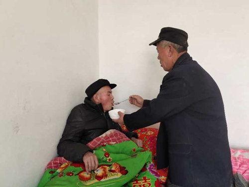 俗話說:長兄如父。父親走了,曹寶慶為了照顧弟弟又當爹又當媽,像照顧自己的孩子一樣照顧著弟弟的日常生活。一日三餐由曹寶慶精心為弟弟料理,四季的衣服按時為弟弟換上。白天忙完地里的農活晚上幫弟弟把臟衣服洗干凈涼好,等弟弟吃罷飯睡下了他才輕輕地帶上門回到自己家中。他本打算把弟弟接到自己家中照顧,這樣能更方便些,可弟弟只愿意待在他熟悉的老房子里。無奈也只能由著弟弟,曹寶慶只能一天三趟穿梭在自己家和弟弟家之間。曹寶慶說:農閑時也倒沒什么,就是耽誤點時間而已,尤其是農忙的時候就有點跑不過來了,但是我不過來,弟弟就吃不上熱飯,他看不到我心里也不踏實。我只能堅持。既然弟弟愿意待在父親留下的老房子里,曹寶慶就盡自己所能把這所老房子重新修葺了一番,讓弟弟能夠更舒適的住在這里。