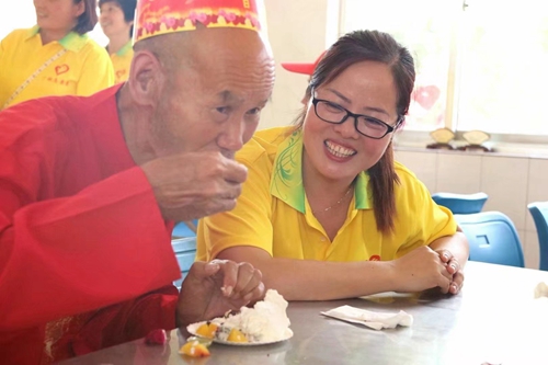 劉小紅給敬老院老人過生日