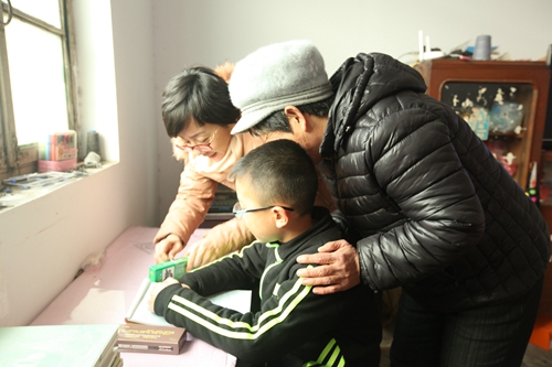 2017年春節,劉繼偉(前一)到高青看望留守望兒童