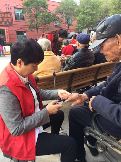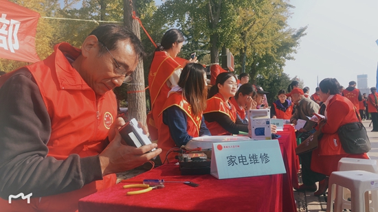 蔣寶峰是一位有維修家電特長的教師。2005年,他看到泉城義工的活動報道后,直接帶著維修工具,和愛人、孩子一起現(xiàn)場報名參加活動。那天,維修電器的居民排起了長隊,拿來的電器大到彩電、組合音響,小到收音機(jī)、電動剃須刀,應(yīng)有盡有,有的一家拿來四五件。一個上午的時間,蔣寶峰一件接一件地修,連頭都顧不上抬一下,水也沒喝一口,汗水順著面頰流到桌面,洇濕了一大片,他自己都感覺不到。當(dāng)蔣寶峰修完最后一臺收音機(jī)時,他長長地舒了一口氣,他說:“雖然很累,但心里很快活!”