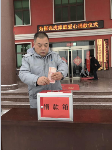 2019年2月14日組織公司全體職工為三廠怡景苑小區(qū)天然氣爆炸崔兆虎家庭捐款17890元,其中他本人捐款1000元,公司捐款10000元。