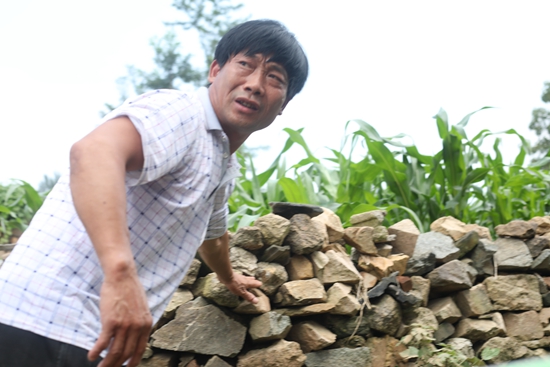 有位老人大門緊鎖,李宜紅和另外一位村民,就沿著墻外的水泥磚塊,爬上近三米高的院墻,跳到了院子中,將老人轉(zhuǎn)移出來。
