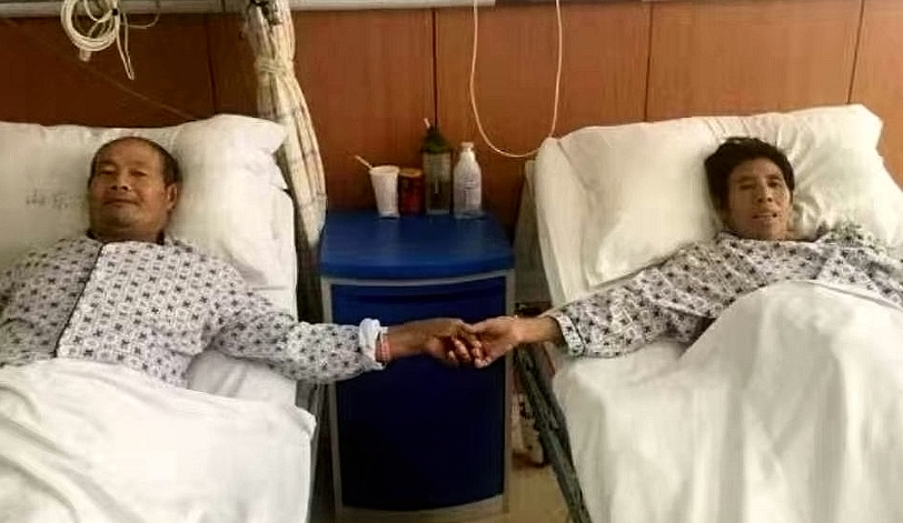 2019年8月10日,面對(duì)妻子陶秀英病情的惡化,63歲王樂(lè)東承擔(dān)起了作為丈夫的責(zé)任,成功捐獻(xiàn)了自己的大部分肝臟給妻子。老兩口術(shù)后住進(jìn)了同一間病房,一轉(zhuǎn)頭就能看到彼此。他們倆躺在病床上手拉起了手,慶幸一同度過(guò)了這一難關(guān)。