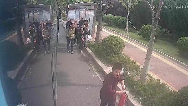 根據(jù)公交車上的監(jiān)控視頻顯示,張彬彬先后從車內(nèi)拿了兩個滅火器下車救火。在將火勢控制住之后,車內(nèi)的三人被周圍熱心的市民一起成功救出來了。他上前再三確認側(cè)翻車的安全隱患消除之后,又詢問了周邊施救的群眾,大家說已經(jīng)撥打了120急救電話。考慮到公交車上還有很多乘客沒有到達目的地,張彬彬這才匆匆趕回車上,拍拍手上的粉末,繼續(xù)投入到工作中。整個過程不到五分鐘。