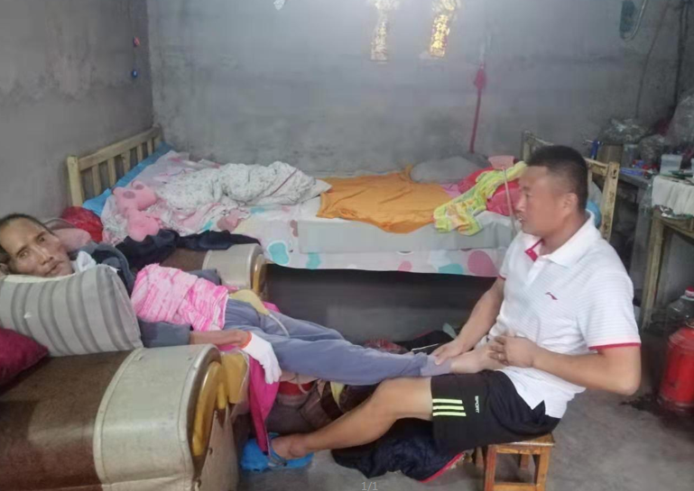 丁福強,男,漢族,1980年4月出生,嶧城區吳林街道辦事處亂溝居人。三十多年前,丁福強父親丁永久騎著三輪車去地里拉柴火,路上與迎面駛來的大卡車撞上了,只聽“哐”地一聲響后,頭部受到重創的丁永久失去了意識。在醫院住了三個多月,動了三次手術的丁永久,因病情嚴重不得不轉院,多家醫院不敢接收,當時很多人建議放棄治療,但是他堅決不答應,他說父親這輩子吃了太多的苦,為這個家付出了太多,所有的積蓄花光了,哪怕賣房子也要把父親治好。后來濟南千佛山醫院接收了丁永久,前后折騰了7個多月,終于成功挽救了父親的生命,但他右腦凹進一個拳頭大小的“窟窿”,留下了植物人的后遺癥,常年癱瘓在床、大小便失禁,只會本能地進食。