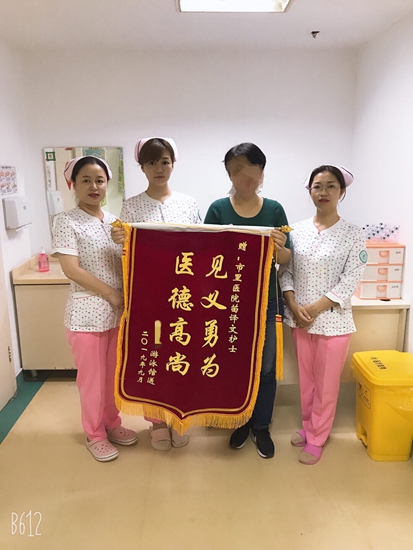次日,游泳館負責人和孩子家長為了表達感激之情,特地送來了感謝信和錦旗。孩子媽媽萬分感激地說:“謝謝你救了我的孩子,也救了我們一家人……”苗譯文卻說:“我是護士,這是我應該做的。”苗譯文在遇到緊急情況下伸出援手,用自己的專業知識及時救助孩子,有效的阻止了一場悲劇的發生,挽救了一個家庭,用實際行動踐行作為一名醫護工作者救死扶傷的精神。