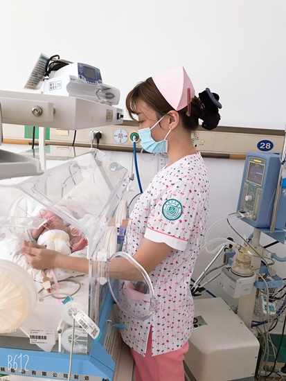 “因為我們這里的患者都是剛出生的小嬰兒,隨時都有可能出現生命危險,跟他們無法用語言溝通,無法溝通之外他們也不能配合你的醫療活動,所以,作為一名新生兒科的護士,尤其想做一名好護士,很辛苦, 需要付出更多的努力。最重要的是,一定要有愛心、責任心和細心,對于每一個小天使來說,我們每一位護士都要像母親對待自己的孩子一樣給予呵護和關愛,寶寶們的每一個皺眉、發聲和小小的細微動作都表示他們不舒服,想要動一動,這些都要仔細觀察……”苗譯文說,當初既然選擇了這份職業,就要不畏艱險,執著向前,盡一切努力把工作干好。