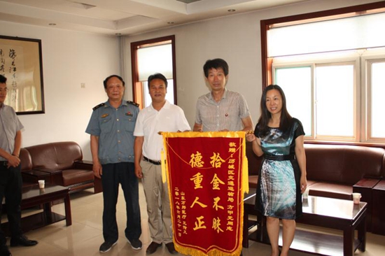 在焦急地等待了大約一個多小時后,錢包的失主王傳義終于趕到了,接過錢包的一瞬間,王傳義立馬掏出錢包里的所有現(xiàn)金說:“真沒想到我的銀行卡和身份證還能失而復(fù)得,太謝謝你了,你這種行動真讓人欽佩,這些錢是對你的一點謝意”。方甲元當場就毫不猶豫的拒絕了,方甲元說:“你丟了錢包肯定非常著急,我只是做了我應(yīng)該做的!痹谑е鞯囊辉僭儐栂,方甲元迫不得已才告訴他是歷城區(qū)交通局的一名職工。自這事以后失主幾次打電話請吃飯表示感謝,都被方甲元婉言謝絕了。6月22日,失主王傳義帶著錦旗來到歷城區(qū)城鄉(xiāng)交通運輸局感謝方甲元同志的時候,局里的領(lǐng)導(dǎo)和同志們才知道這事,局黨委副書記鄭靜和同志們都為方甲元拾金不昧的行為點贊。