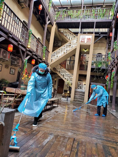 由于不能使用中央空調,里院客棧客房里的單體空調不分晝夜連續運轉了一個月,僅電費一項就支出3萬多元,加之免費提供食宿,客棧為此付出了十幾萬元的費用。有同行問王亮,是否擔心酒店未來會受此影響損失客流,也有同行向他詢問政府征用補償的問題。當聽到這些問題時,王亮說:“現在正處于咱們國家和社會的重要時刻,在防疫戰場上,不僅僅是我一個人做這些事情,那些醫務人員、公安民警以及街道社區工作人員都是在舍小家為大家,他們放棄了合家團圓,奮戰在阻擊疫情的第一線,讓我深受感動,我也有責任也有義務用自己的實際行動為國家和社會做點什么。如果我們不共同努力,早點戰勝疫情,損失的將遠不止酒店這點收入。”