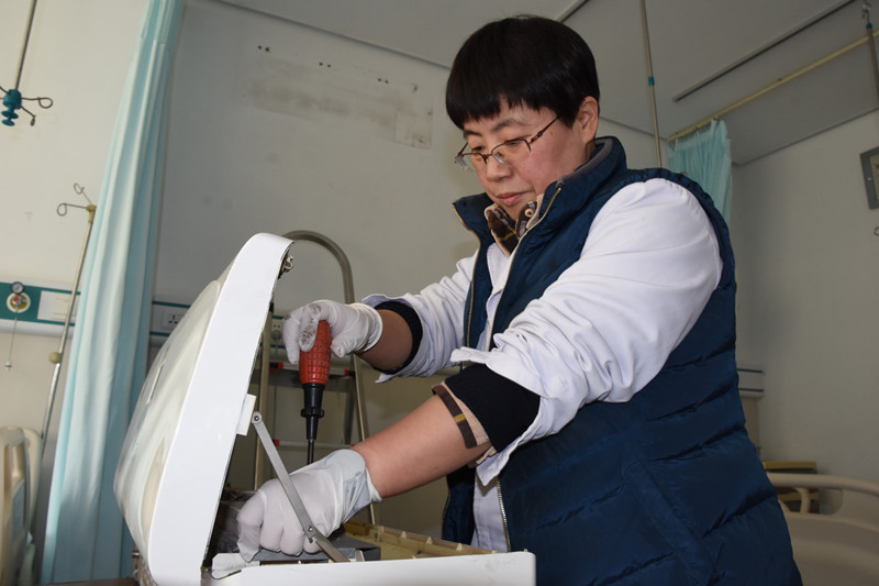 手術室、ICU、病房、特檢科、消毒供應中心,該去跑的,她能跑就跑,大冬天也時常鼻子尖冒汗;小到血壓計、電子秤,大到呼吸機、高壓氧,不管什么設備,無論上班還是休息,只要一聲招呼,她肯定最快時間跑到現場,迅速排除故障;一年365天,她能上班330天。