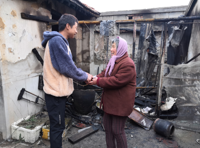 整個救火過程一直持續了1個小時,最后屋里炕上的被子、家里的衣櫥、柜子也基本都被燒了。但幸運的是,王盼磊和鄰居的及時相助,保住了住戶放在家里的存折和現金。住戶特別激動,拉著王盼磊的手一直感謝,但他卻不好意思地撓撓頭,說“沒什么,應當的”!