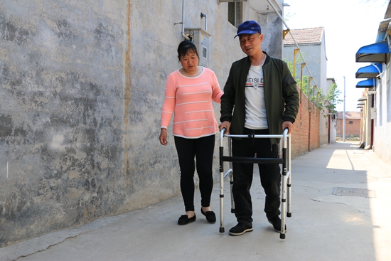2016年的國慶節(jié),是一個(gè)令左現(xiàn)寶難以忘懷的日子。這天夜里由于睡覺受了涼,左現(xiàn)寶舊病復(fù)發(fā),腰痛、腿脹抽筋,難以拄著拐杖站立,當(dāng)時(shí)哥哥不在家,這可急壞了嫂子彭蘇霞。情急之下,彭蘇霞只好把幾個(gè)孩子關(guān)在家里,獨(dú)自一人帶著小叔子到離家近的濟(jì)寧醫(yī)學(xué)院附屬醫(yī)院兗州院區(qū)治病。由于人生地不熟,嫂子彭蘇霞反反復(fù)復(fù)來回跑了好多趟才找到一輛輪椅,推著小叔子樓上樓下掛號、看醫(yī)生、拍片、拿藥,從日出到日落,忙活了整整一天,沒能來得及喝上一口水,吃上一口飯。