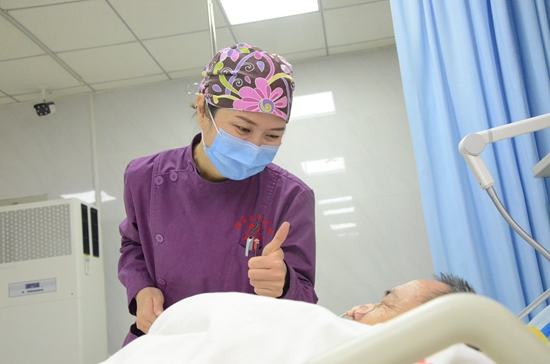 在湖北工作的38天中,最讓耿艷菲難忘的是在方艙醫院給一名患者過生日。2月21日的夜班,耿艷菲所管轄的病區正好有位患者過生日,由于方艙醫院內條件有限,沒辦法買到蛋糕。為了讓患者過個難忘的生日,耿艷菲和隊友們特意用牛奶擺成“27”的形狀,把橙子擺成心形,寓意是心想事成,這個驚喜讓患者非常感動,并且說這是他過的最難忘的一個生日。耿艷菲說,看到戴著口罩的患者流露出幸福的眼神,贏得了患者的滿意,我覺得我所做的一切,值了。