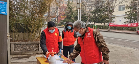 劉玉考所居住的金山社區面積不足1平方公里,有居民小區42個,2324戶,6808人,居住人口密度較大、社區工作人員少且以女性為主。疫情發生后,社區全部工作人員都投入到了抗擊疫情的戰斗中,工作力量卻仍然捉襟見肘。社區防控力量薄弱、防控壓力大的問題,劉玉考看在眼里,急在心里。“我是一名共產黨員。面對疫情,我理應沖鋒在前,為打贏疫情防控阻擊戰做出黨員應有的示范帶頭作用。”大年初二,他就毫不猶豫地報名加入了社區抗疫志愿者的隊伍,以一名老黨員的身份成為了沖鋒在社區抗疫一線的“戰士”。疫情中的泰城格外的寒冷,但他卻從未間斷志愿服務工作,而且一干就是20多天。他每天都堅持守護在社區防控點開展一線防控工作,對進出小區的居民測量體溫、辦理出入登記,并在各小區輪流進行巡查,積極調查疫情防控的薄弱環節。在日常的志愿巡查中,他發現多處被居民破壞的封路圍擋,及時向社區報告,幫助社區防疫工作“找漏洞,補短板”。