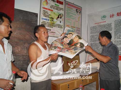 村干部向群眾發放學雷鋒宣傳畫