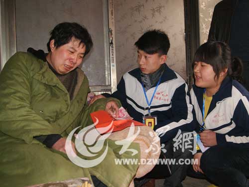 “一個村里鄉里鄉親,知道這個事兒,大家都掉淚了,咱不能眼看著這個家塌了。”村黨支部書記劉玉懷說。村里召開黨員會,動員全村力量共同來救助“龍鳳胎”家庭,28名黨員帶頭捐款捐物,村民紛紛伸出援助之手,七旬老漢撕開棉襖掏出存了多年的老版100元鈔票,全村300多戶人家有260戶慷慨解囊。義捐現場,村民殷桂榮瞞著家里患有老年癡呆癥的老伴率先捐出1000多元錢。村里老的少的、男的女的,扔下50元、100元、500元,扭頭就走,3天捐了35000多元。鄆城縣委書記王永華聞之此事后,也安排有關部門向“龍鳳胎”家庭送去5000元現金、面粉和食用油。
