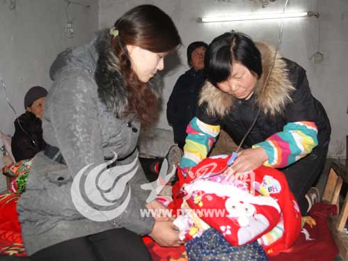 志愿者給龍鳳胎捐助衣物