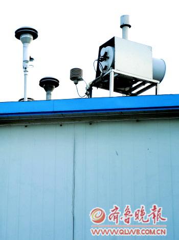 在濟南市監測站監測子站,類似“蘑菇”的就是監測PM2.5的旋風式切割機。(資料片)