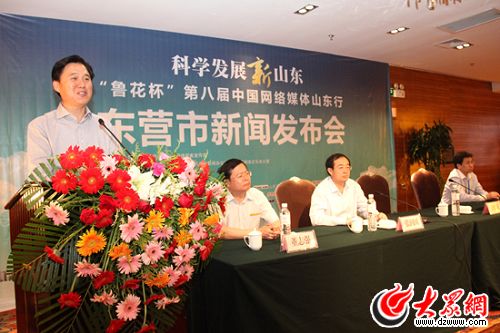 東營(yíng)市人民政府副市長(zhǎng)楊夢(mèng)斌出席東營(yíng)市新聞發(fā)布會(huì)并致辭。(馬鑫 攝)