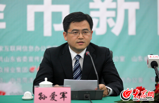 菏澤市委副書記、市長孫愛軍出席科學發(fā)展新山東——“魯花杯”第八屆中國網絡媒體山東行菏澤市新聞發(fā)布會。(盛堃 攝影)