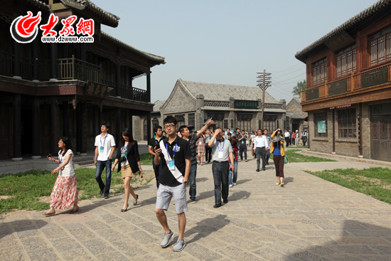 采訪團記者在影視城內參觀采訪。(盛堃 攝影)