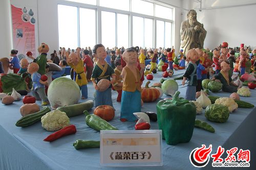 動漫學院的老師用泥捏出的《蔬菜百子》(馬鑫 攝)