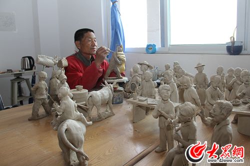 在濰坊科技學院,本地的一位民間藝人被請到學校,教授陶藝創(chuàng)作技巧(馬鑫 攝)