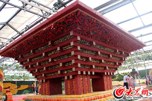 用番茄打造的上海世博會中國館。(馬鑫 攝)