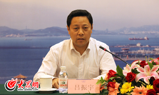 青島市委宣傳部常務副部長呂振宇主持新聞發布會。(盛堃 攝影)