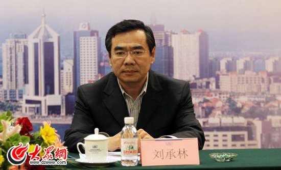 青島市政府副秘書長劉承林出席新聞發布會。(盛堃 攝影)