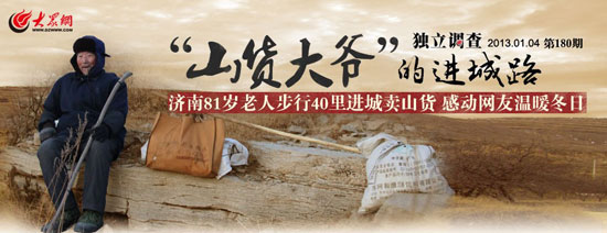 “這正是‘山貨大爺’平時進城走的那條山路。”一同前往的興隆街道辦事處副主任楊洪軍說,這條山路長約15公里,沿途有16個自然村、2萬多村民,因為山區地少,70%的村民都要外出打工,打工者和100多名到20多公里外的中學念書的學生,都要走這條路進城,村民們盼著通公交都盼了十多年了。