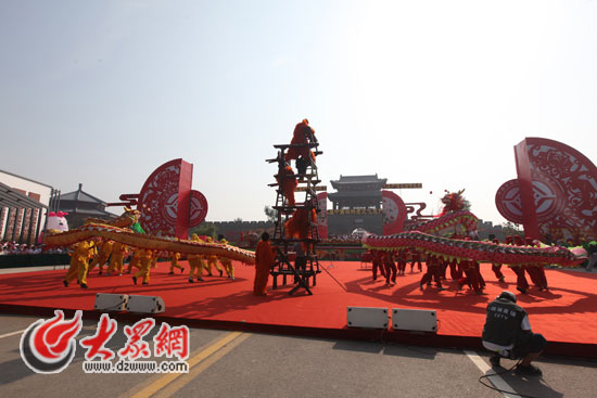 魯南鼓吹樂奏響全場 山西“雄獅”天塔起舞