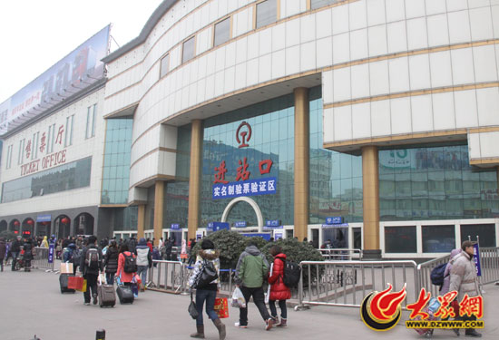 馬上要過春節(jié)了,很多家在外地的人都抓緊最后的時(shí)間搭上回家的列車。但與前幾天相比,濟(jì)南火車站的人已經(jīng)減少了很多。記者1月20日上午9點(diǎn)來到進(jìn)站口時(shí),發(fā)現(xiàn)并沒有想象中的人山人海的場(chǎng)景。在車站門口服務(wù)臺(tái)工作的程老師告訴我們,今天上午的進(jìn)站高峰已經(jīng)過去。早上6點(diǎn)時(shí),進(jìn)站人數(shù)達(dá)到了一個(gè)小高潮。“現(xiàn)在人已經(jīng)少一些了,驗(yàn)票同事的工作能輕松一點(diǎn)。到10點(diǎn)左右人數(shù)又會(huì)變多。”程老師介紹說!斑@兩天氣溫比較低,加上春運(yùn)人數(shù)這么多,不少驗(yàn)票的同事都帶著感冒輪班的!