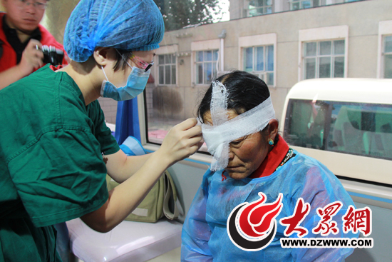 “謝謝!謝謝!”走下手術車,次旺卓嘎首先向在手術車外等待的領導和醫生們表達了感謝。在被問及手術的感覺時,次旺卓嘎告訴記者,手術剛剛進行時眼部還是有一丁點疼痛的感覺,但后來很快就沒有了,自己非常期盼著明天右眼能重新看到東西。“感謝山東的醫生,謝謝。”在丈夫的攙扶下,次旺卓嘎不住的朝人群點著頭。