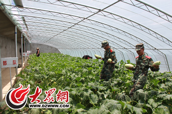 駐昂仁縣的武警戰士被邀請采摘首次結出的西葫蘆。