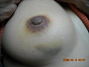 患者李xx,女,四十七歲,家住黑龍江省雞西市。于2009年7月無意中發(fā)現(xiàn)右乳頭內(nèi)陷,遂先后就診于當?shù)厥腥嗣襻t(yī)院和礦務(wù)局總醫(yī)院,經(jīng)彩超及X線鉬靶檢查均提示:右乳占位(大小約2.5x3cm),考慮為乳腺癌。當?shù)氐V務(wù)局總醫(yī)院建議其接受全乳根治性切除手術(shù)治療,患者因不愿意行全乳切除,要求醫(yī)生為其行小切口腫瘤切除保乳術(shù),但醫(yī)生認為腫瘤距離乳頭不足2cm,不適合行保乳術(shù),而且切不徹底也不安全,于是患者決定放棄手術(shù)治療,求治中醫(yī)。經(jīng)本人采用“董氏調(diào)胃、強腎、止血、化巖中醫(yī)治癌法”治療,治療一個月后,從乳頭排出少量黑色粘稠腐敗液,乳房皮膚出現(xiàn)大片淤血斑,復(fù)查彩超已無明顯的占位跡象,以至于對照前二次彩超及X線鉬靶結(jié)果,彩超醫(yī)生不知如何下結(jié)論為好,就決定退還此次彩超費,建議其再到市人民醫(yī)院做彩超檢查,以與前次結(jié)果對照,結(jié)論也是未提示占位,只提示低回聲囊性病變,內(nèi)有鈣化;颊哒J為不管怎樣,病情沒發(fā)展就行,于是要求繼續(xù)中醫(yī)藥治療,按前方案加減繼續(xù)治療一個月,乳頭無明顯內(nèi)陷,其上方橘皮樣改變消失,我建議其到當?shù)氐V務(wù)局總醫(yī)院于病變處取組織進行病理檢查,結(jié)果先后兩次做病理活檢均提示:乳腺導(dǎo)管炎性反應(yīng)。于是停止繼續(xù)治療,于2011年2月21日回訪,患者一切如常,病變處橘皮樣改變已完全消失,乳頭內(nèi)陷已復(fù)出,乳房皮膚瘀斑已完全消散,一切正常,至今已有3年。
