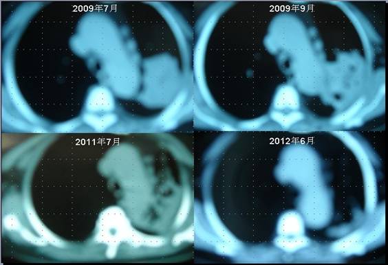 肺癌病人李XX采用“董氏治癌法”治療前后CT變化