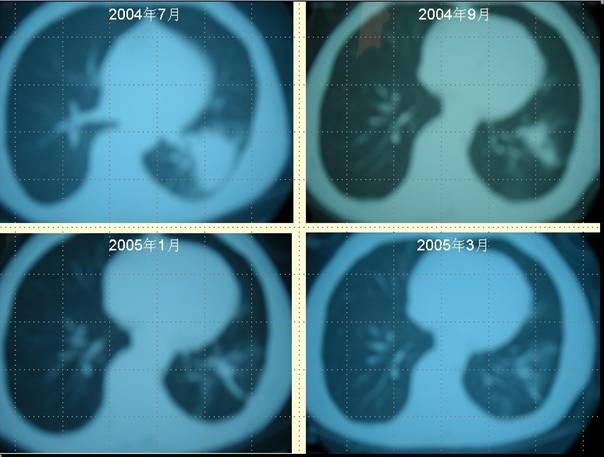 肺癌病人柴XX采用“董氏治癌法”治療前后 CT對照變化