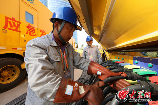 濟南供電公司保電隊員調試發電車