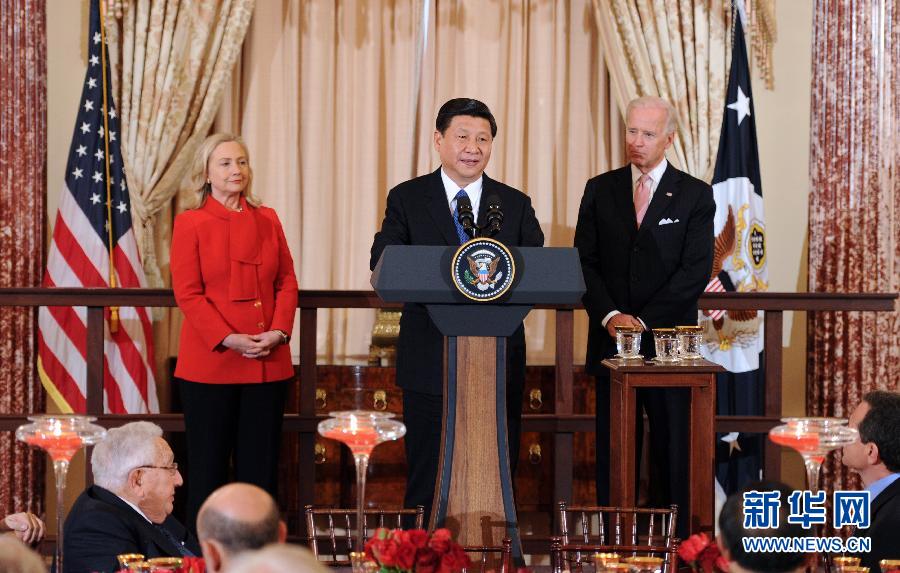 2012年2月14日,中國國家副主席習近平在華盛頓出席美國副總統拜登、國務卿希拉里·克林頓共同舉行的歡迎午宴。這是習近平在歡迎午宴上致辭。