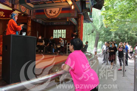 白雪樓原為明代著名文學家李攀龍的藏書樓。1956年趵突泉擴建公園時,該樓因破爛不堪被拆除,1996年予以重建并對外開放。戲臺位于白雪樓北側,記者了解到,白雪樓大戲臺天天京韻陣陣,曲弦悠悠。而且,每當雙休日、節假日,多戲曲、多場景,專業、業余劇團齊上,京劇、呂劇、曲藝、柳子戲等戲劇各展異彩。
