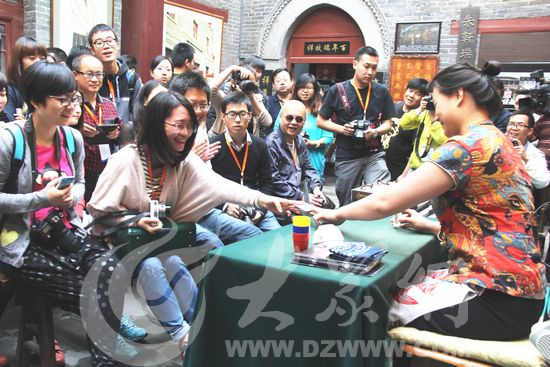 今天上午,采訪團走進周村古城大街,民俗婚禮當街上演,瑞蚨祥老號里回味魯商文化,大染坊內見證絲綢古鎮的繁華。記者們置身古城老巷中,恍然間回到了百年前那個繁華鼎盛的“旱碼頭”。